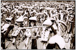 2004zwart-wit foto van fietsen in de sneeuw.